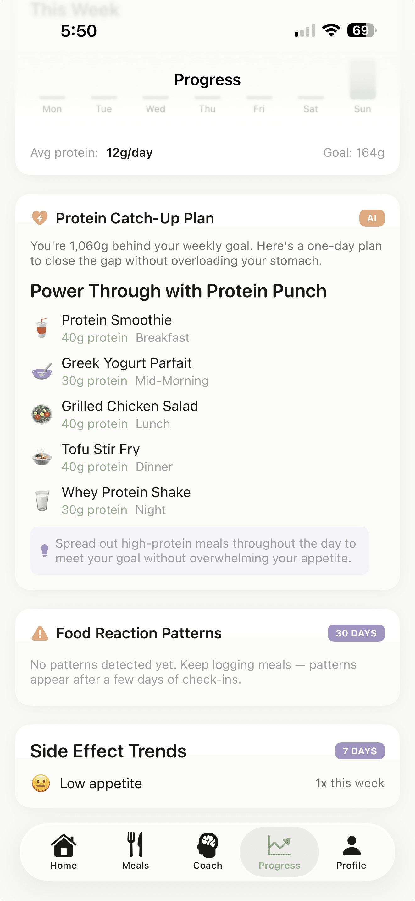 GLP-1 medications change how you eat. Appetite drops. Side effects vary. PurePantry adapts in real time.